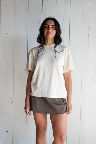 All product imagery and content for this theme demo have been kindly provided by Merge. Inspired by our signature Dream Tee, our new Rover Tee has a throwback look and a slightly thicker neckline. Embellished with unique topstitching throughout, this tee adds elevated contrast to a carefree look in a sustainable weave of hemp and cotton.